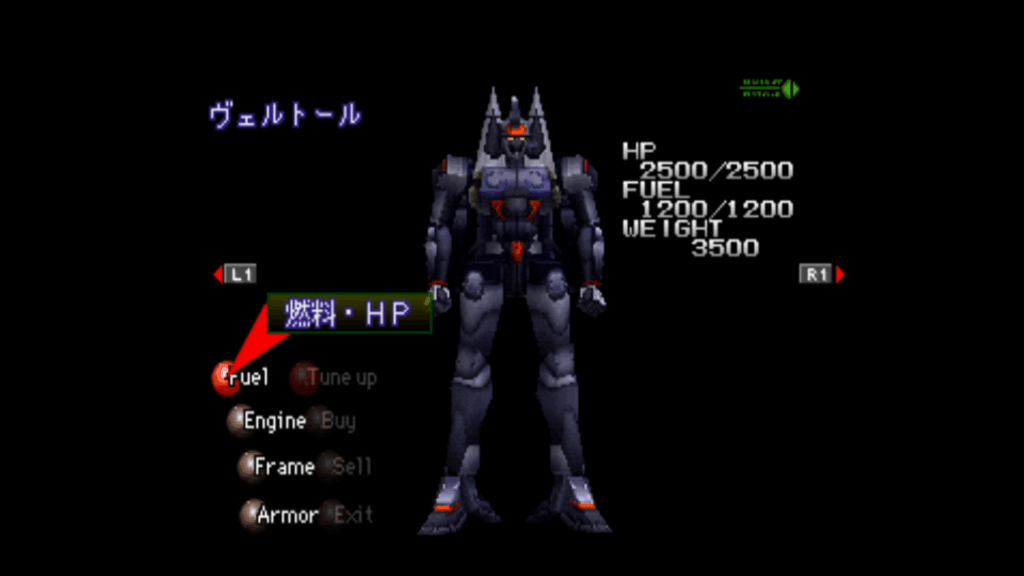バルタザールと話すとギアの改造やHP回復、装備品購入などを行う事ができます